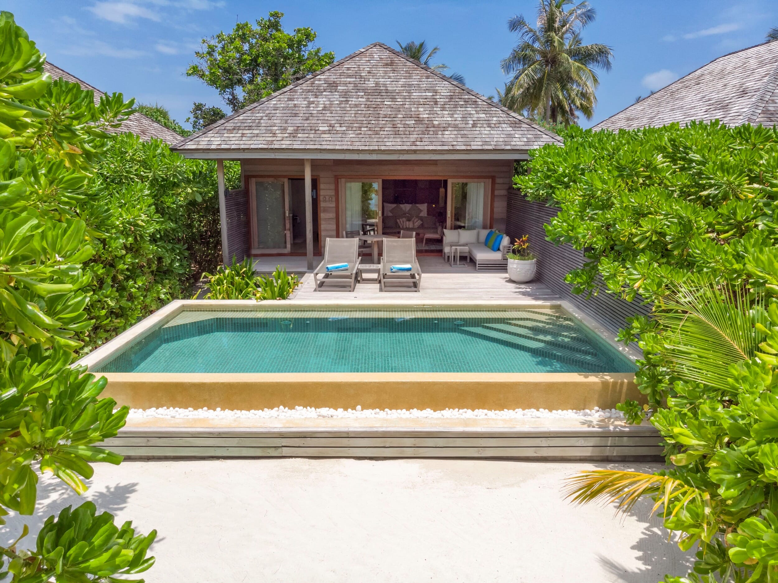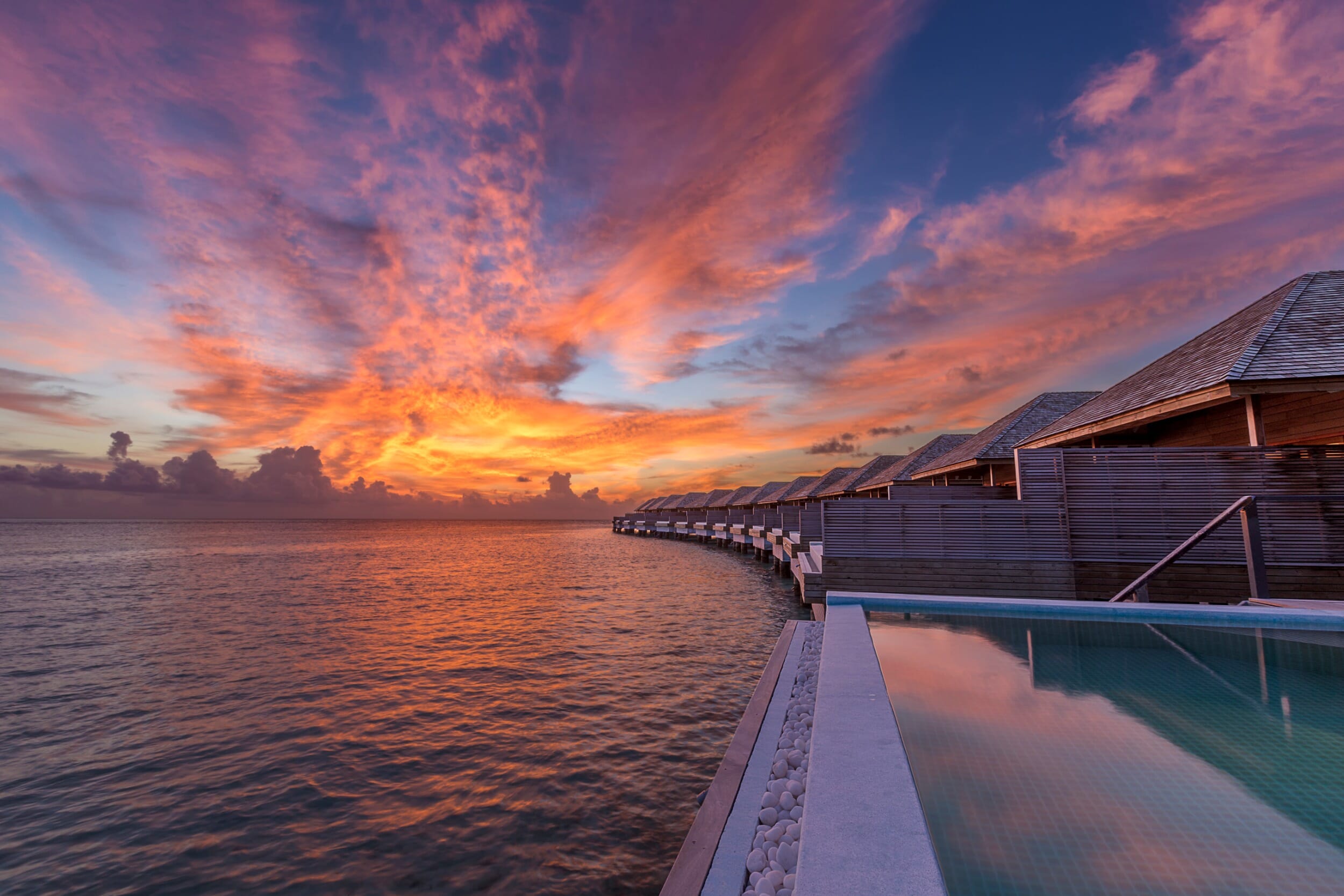 - Elegant overwater and beachfront villas with private pools and direct water access