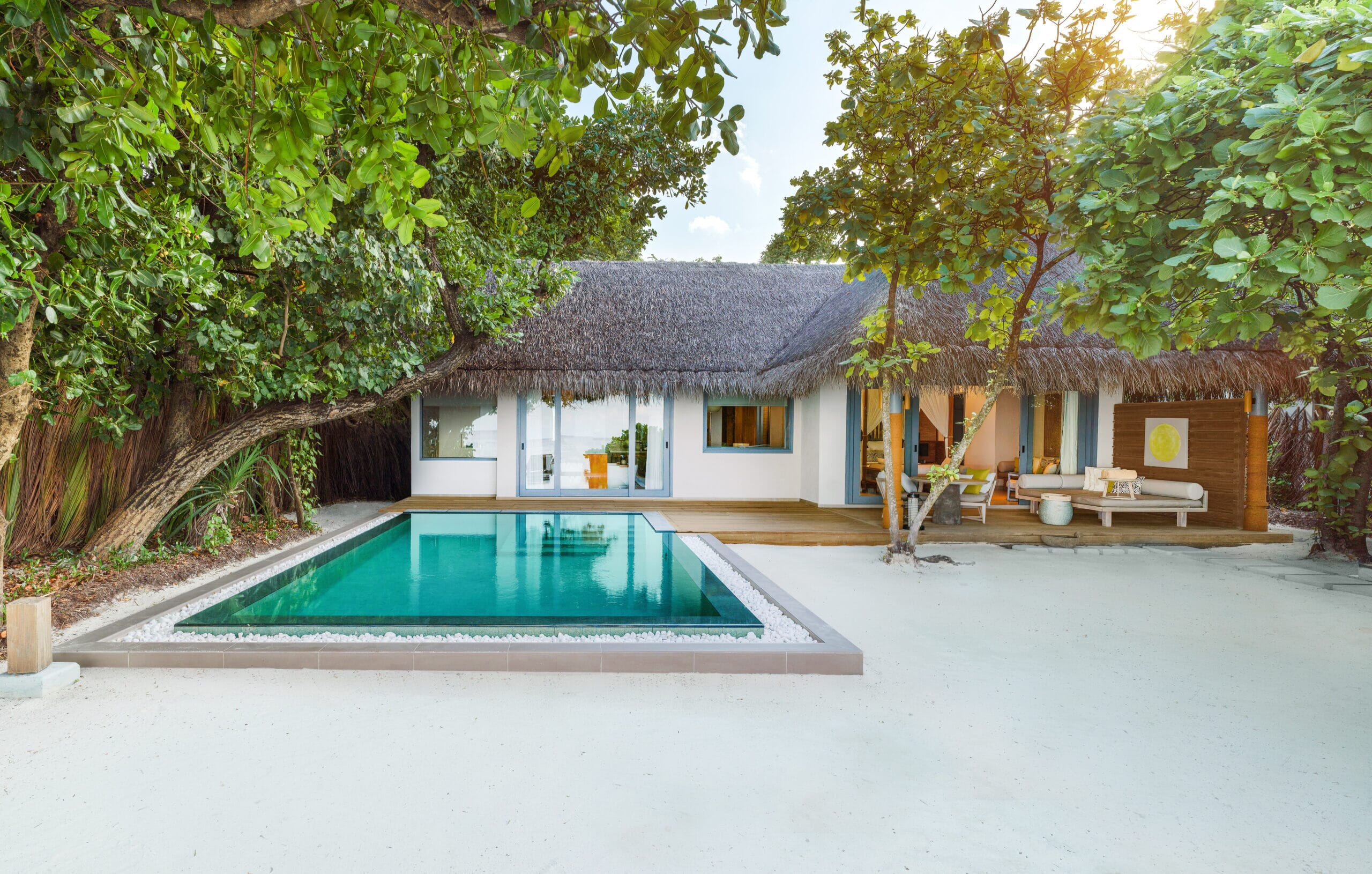 Accommodation is designed with space and serenity in mind, featuring beautifully crafted villas with private pools, open-air living areas and views across the lagoon or ocean. Natural materials and soft design elements create a calm atmosphere, allowing guests to feel connected to the island’s surroundings without sacrificing modern comforts.
